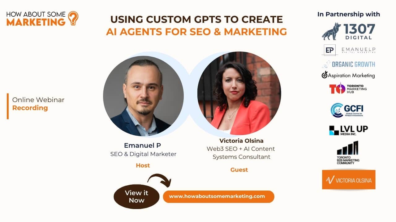 Artificial intelligence is reshaping SEO and marketing, but most teams still struggle with where to start. In this live training, Victoria Olsina shows how to build no-code Custom GPTs that act as AI agents for SEO, content, and marketing workflows.
